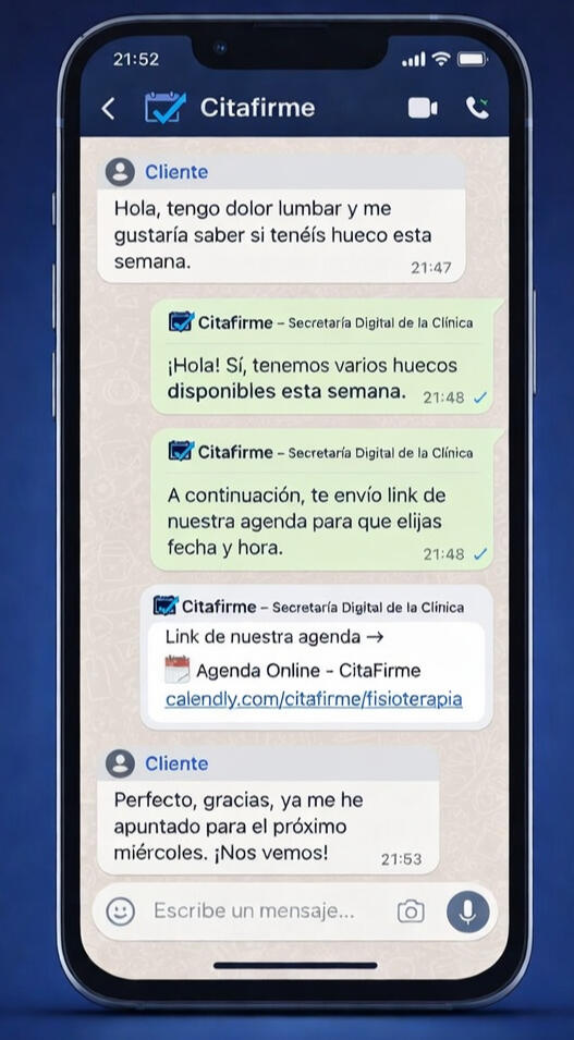 🟢21:52 → Cita confirmada.Sin que nadie del equipo intervenga.Eso es convertir.