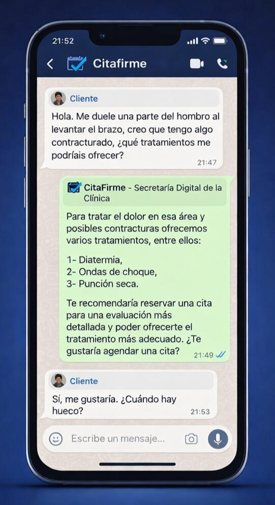 👉diseñado exclusivamente para clínicas privadas de fisioterapia.❌No es un bot genérico.